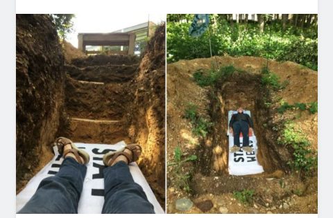 Yagize iti “Kuva ingingo y’urupfu no kwitekerezaho ikomeje kugarukwaho mu biganiro, twacukuye indi mva mu busitani aho ushobora kuryama.”